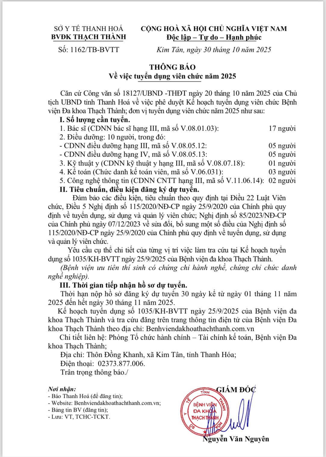 Thông báo tuyển dụng viên chức năm 2025 tại Bệnh viện đa khoa Thạch . . .