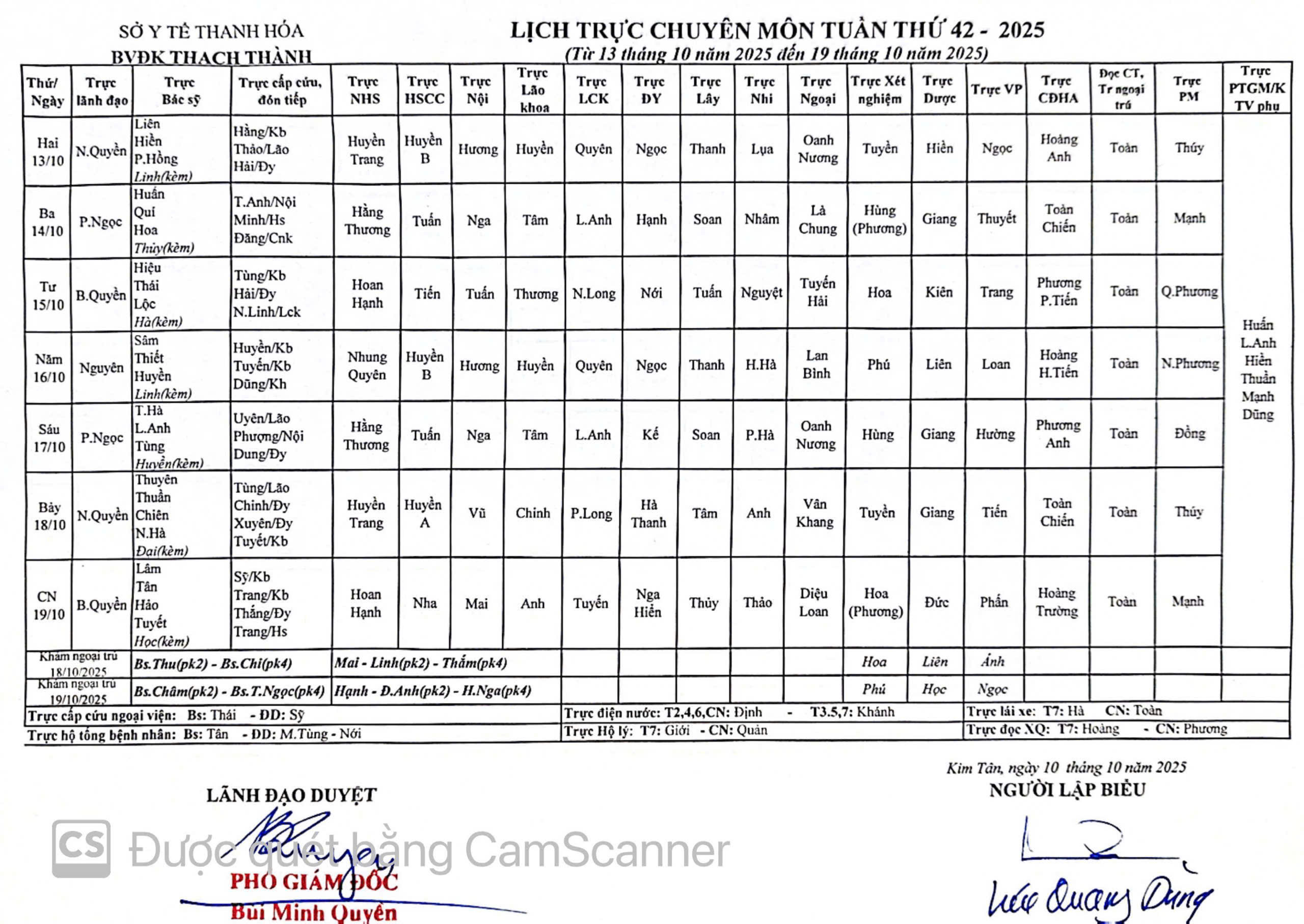 Lịch trực chuyên môn tuần thứ 42 - 2025 (Từ 13 tháng 10 năm 2025 đến . . .